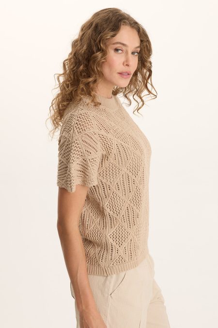 Diamond-knit Cali Cotton graces this short-sleeve mock-neck top. She’s a sweater with the endless possibilities of a tee—all in one swell package! Cali Cotton Knit: 100% Cotton Center Front (~in): ~19.5″ Center Back (~in): ~23.5″ Color Description: Clean Crisp Khaki Preshrunk Machine washable Imported MODEL Mariana is wearing size XS Height:…